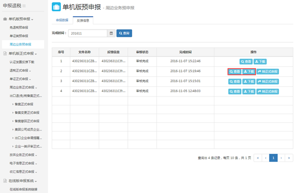 点击“下载”按钮下载预审核反馈ZIP文件,将反馈的ZIP文件读入到出口退税