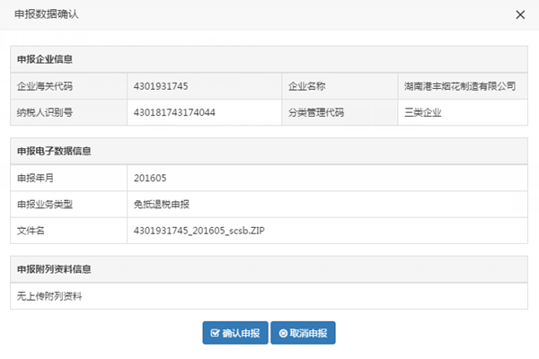 再次确认正式申报数据台账信息后,点击“确认申报”按钮提交最终正式申报数据。