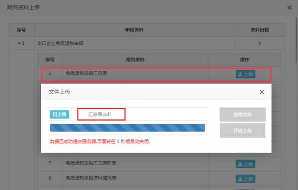系统仅支持PDF及ZIP两种文件格式上传,并同时支持出口退税申报系统中导出的PDF报表格式上传。