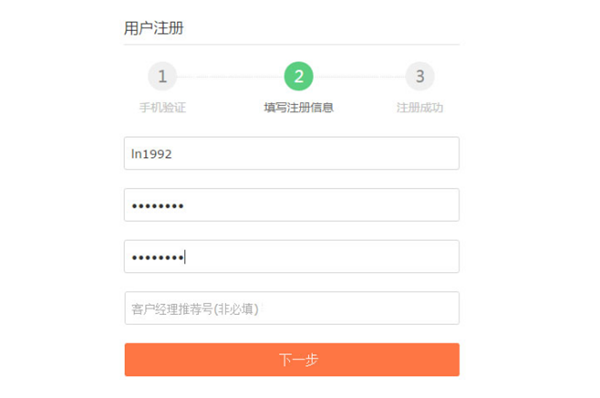 输入自行设定的用户名和密码,点“下一步”。如图1-10所示: