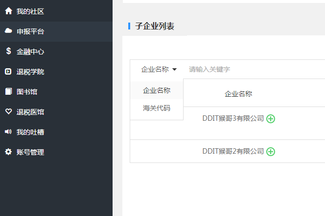 查看已添加子企业信息。可对子企业进行查看、删除、设置子用户(根据子企业信息匹配相应的用户名)以及添加合同等操作,并可查看子企业的激活状态和添加的合同审核状态。子企业与子用户无需一一对应。如图1-43所示: