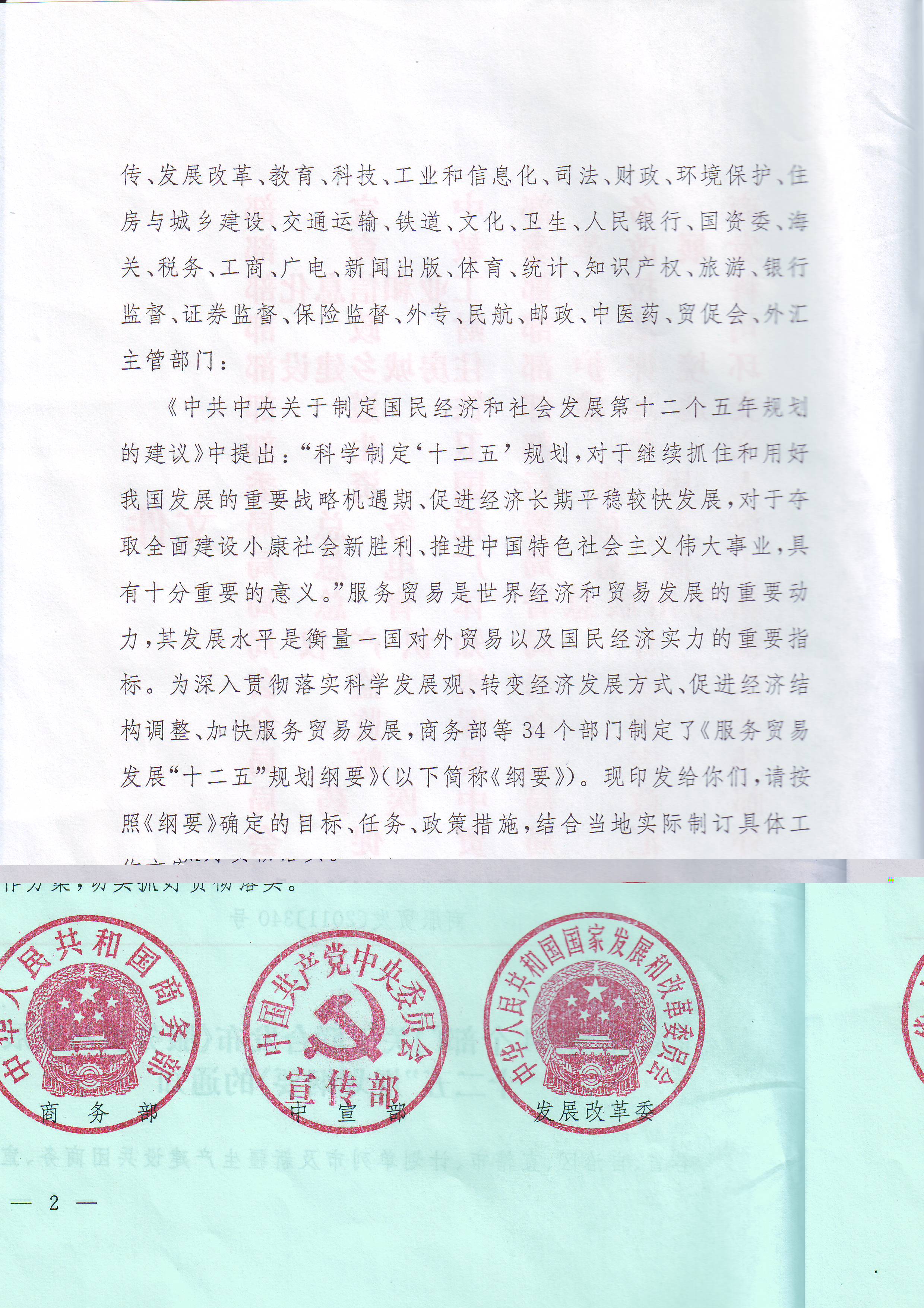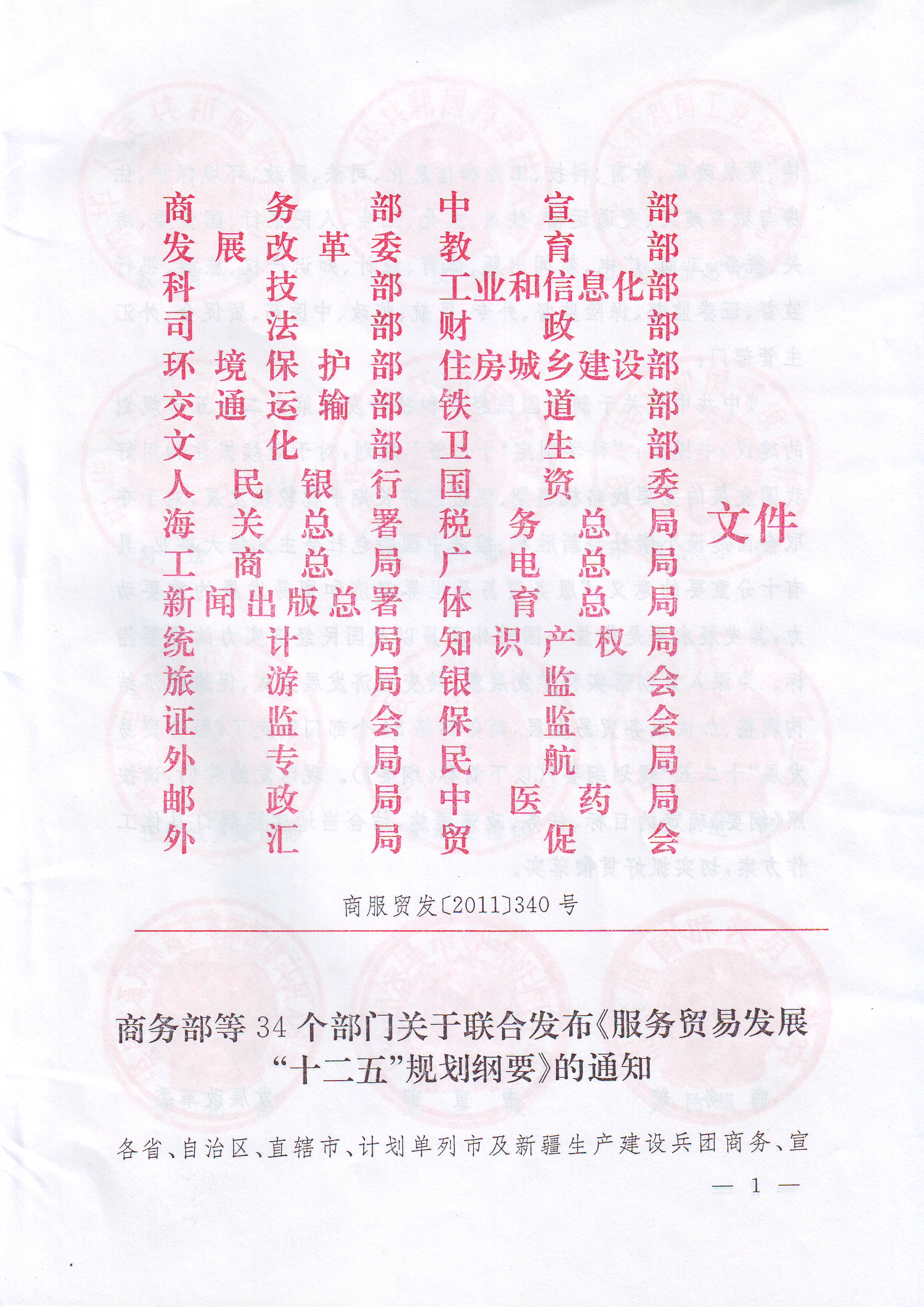 商务部等34个部门关于联合发布《服务贸易发展“十二五”规划纲要》的通知