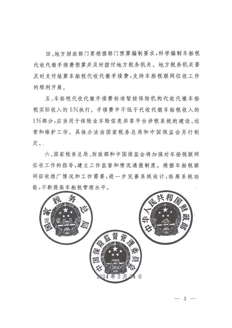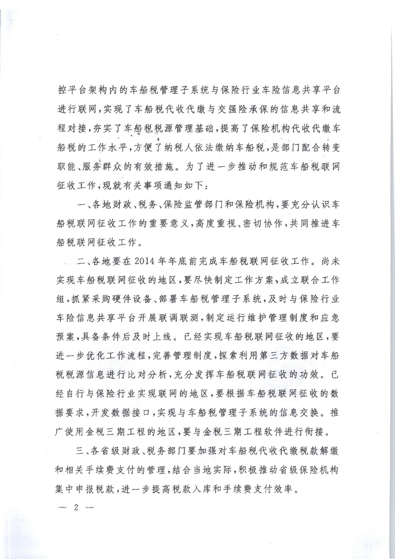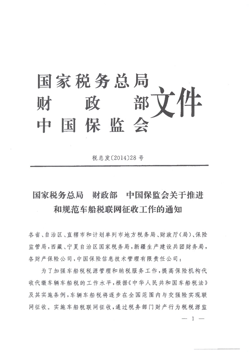 国家税务总局 财政部 中国保监会关于推进和规范车船税联网征收工作的通知